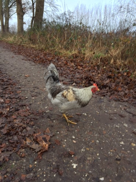 HaanAl een tijd wordt een van onze bestuursleden door passanten aangesproken over een loslopende haan in de Prinsenlaan. Zelfs in Bilthoven was de haan onderwerp van gesprek. De eerdere speurtochten waren vergeefs geweest, maar op 14 december 2016 werd de haan aangetroffen. Daar stond de vogel midden op het pad rustig te wachten. Het is duidelijk dat deze haan mensen gewend is, wel afstandelijk, maar zeker niet schuw. Hij ziet er gezond uit en heeft dus tot nog toe geen voedsel te kort gehad. Toch liet hij de meegebrachte boterham goed smaken om daarna weer naar zijn goed verscholen slaapplaats in het struikgewas terug te gaan. Het is nu maar te hopen dat er geen vos hem op het spoor komt, want dan is het vrije leven snel voorbij. Dus als u binnenkort door het Prinsenlaantje loopt of fietst, neem dan wat voer voor de haan mee!